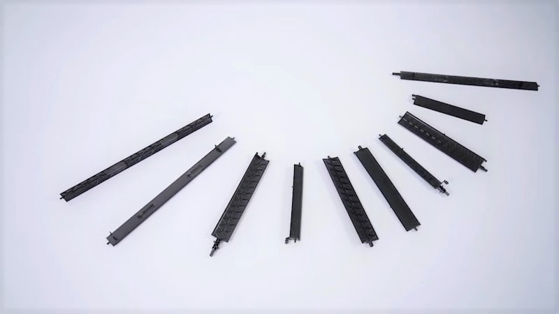 Os nossos moldes suportam a produção de componentes para sistemas de transporte e correias, incluindo elementos de guia, caixas e suportes de rolos. Estas peças requerem resistência mecânica, baixo atrito e durabilidade.